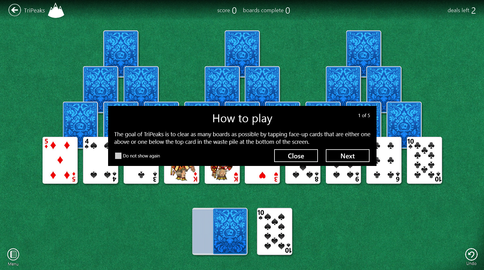 โดยคราวนี้ Solitaire นั้นได้เปลี่ยนรูปแบบใหม่เป็น Microsoft Solitaire Collection ซึ่งจะรวบรวมเอาเกมไพ่ที่คุณคุ้นเคยมารวมไว้เป็น 1 โปรแกรม ซึ่งจะมีทั้งเกม Klondike (หรือเกม Solitaire ที่เรารู้จักกันดี), Spider เกมไพ่ที่มีตั้งแต่ Windows ME , FreeCell เกมไพ่สุดยากประจำเครื่อง, Pyramid เกมแนวใหม่ที่ช่วยคุณบวกเลขได้อย่างแน่นอน และสุดท้ายเกม TriPeaks เกมภูเขาสามลูกที่ดูเหมือนเล่นยากแต่จริง ๆ ง่ายนิดเดียว