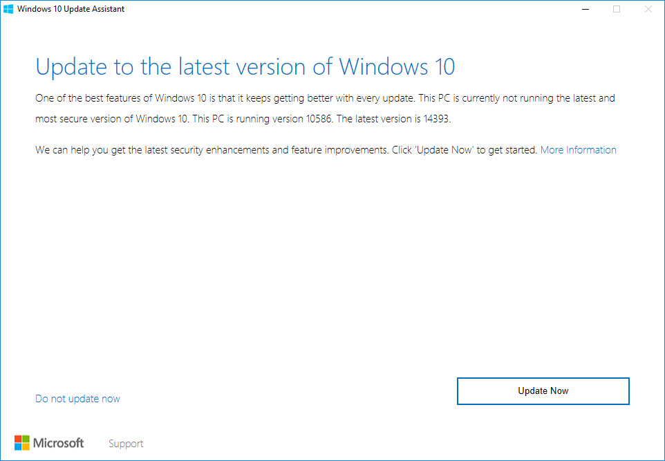 ล่าสุด Microsoft ได้ปรับเปลี่ยนหน้าตาป๊อปอัพการแจ้งเตือนให้เห็นปุ่มต่าง ๆ ได้ชัดเจนยิ่งขึ้น ซึ่งก่อนหน้านี้มักจะมีปัญหาตรงที่ว่า ปุ่มนั้นอาจจะเล็กเกินไป จนใครบางคนอาจจะไม่ได้สังเกต และการกดปิด (X) ออกไปนั้นก็ไม่ได้เป็นการยกเลิกแต่อย่างใด